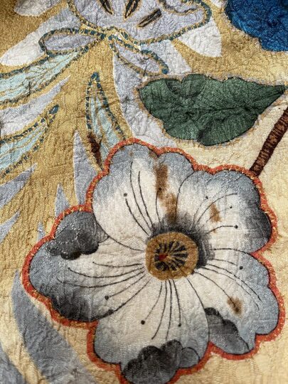 辻が花着物 変色シミ 染み抜き・クリーニング前